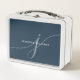 Elegant Plain Dusty Navy Blue Script Monogram Metal Lunch Box