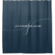 Elegant Plain Navy Blue White Script Monogram Shower Curtain