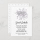 Elegant plum and grey with floral and dots wedding guest details card. Card features black text.