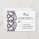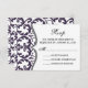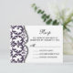 This custom wedding RSVP response card is perfect for your classic, elegant wedding. An intricate damask background features a subtle heart pattern. Available in any custom colour, just contact us for product customisation, at no additional cost. Coordinates with matching invitations & stationary.