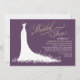 Elegant bridal tea shower invitation for the stylish fall bride-to-be features an ornate calligraphy script font and flowing wedding gown. Scroll flourish, flower and butterfly details accent the ethereal dress. White, plum / aubergine purple, and champagne gold / tan autumn colours.
