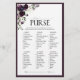 Modern, elegant bridal shower game "What's in Your Purse" featuring a floral bouquet of soft, watercolor roses in shades of plum purple, with lush green eucalyptus botanical leaves, and bordered in plum purple. Personalise your answers in black, accented with beautiful modern hand lettered calligraphy. Part of a co-ordinated suite. View suite here: https://www.zazzle.com/collections/plum_purple_watercolor_floral_bridal_shower-119250449992466290 Contact designer for matching products. Copyright Anastasia Surridge for Elegant Invites, all rights reserved.
