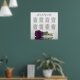 This wedding seating chart is simple, elegant, romantic and chic. The design features a single plum purple or eggplant coloured rose reflecting in water with waves and ripples with a lacy script calligraphy title reading "please find your table." There is space for the names of the couple and the wedding date. This seating chart has table assignments for 80 guests at 8 tables (10 people per table.) Great way to make your reception beautiful while helping your guests find the right seat.