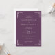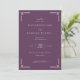 This elegant wedding invitation features a deep plum background with white text and decorative accents, creating a sophisticated and inviting look. The layout is vertical with centered text alignment, complemented by ornate corner brackets that add a touch of classical charm. A mix of serif and script fonts enhances the formal yet whimsical feel, while ample spacing ensures readability. Perfect for couples seeking a timeless design, this invitation sets the tone for a memorable celebration.