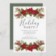 Modern elegance holiday party featuring a beautiful poinsettia and holly berry frame set on a white background.