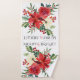 Elegant Poinsettia Floral Merry & Bright Christmas Bath Towel Set