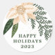 Elegant Poinsettia Happy Holiday Watercolor Classic Round Sticker