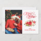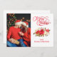Elegant Red White poinsettia Flower Bouquet Script Merry Christmas Photo Card. Customise this with your photo and name to make it your very own.