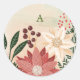 Elegant Poinsettia Monogram Holiday Watercolor Classic Round Sticker