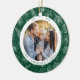 Simple and elegant holiday ornament with 2 of your photos encircled by a white border with a green and white pinecone and poinsettia patterned background. Personalise the holiday photo ornament by adding your family's name and the year.