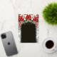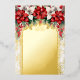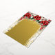 Elegant and classy dark red and white floral poinsettias with seasonal pine greenery on a splatter frame "Quinceañera" seasonal party design by Holiday Hearts Designs. All text and non-floral accents are real gold foil. Composite design by Holiday Hearts Designs.