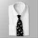 Beautiful neck tie with elegant polka dots in light blue and golden colours on black background.
