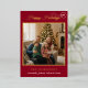 Classic elegance with fun, this unique holiday card features your photo in a real foil gold scalloped postage stamp style border. An elegant script displays your customised greeting in foil. "Happy Holidays" in the example but you can change this to "Merry Christmas" or any greeting you want. Your name is featured in a traditional typeface beneath the photo also in foil. Add individual names beneath that. A unique fun touch is the year displayed in a postage cancellation style. This card is a modern classic with nostalgic vintage style.