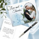 This beautiful postcard is a simple yet thoughtful way to thank your wedding guests. It features a lovely design with your wedding photo in an oval shaped frame, and a single long stemmed dusty powder blue coloured rose reflecting in a pool of water. The caption reads "Love and Thanks" and there is space for your custom note on the back as well as your signature.