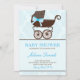 Elegant Pram Boy Baby Shower Invitations