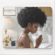 Elegant Praying Mother - Uplift your workspace with this beautifully designed mouse pad featuring an illustration of a mother praying on her knees beside her bed. Whether as a personal touch for your office or a meaningful faith-based gift for someone special, this mouse pad is a perfect blend of faith and function.