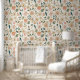 This beautiful wallpaper features a maximalist floral pattern in gold, teal, blush pink, and off-white over a custom colour background (shown in ivory). Great for a little girl's nursery or bedroom...or for any other use!