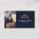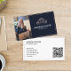 Elegant Modern Professional Real Estate Add Photo and QR Code Business Card, navy and gold colour