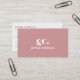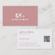 Elegant minimalistic professional business card with a custom monogram on the front on a Presley Colour background and custom typography on the back on a white background.