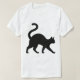 Elegant black cat silhouette showing a graceful walk in profile, with an arched back and tail raised in a smooth S‑curve for a poised, minimalist vibe. This high‑contrast vector perfects t‑shirts, stickers, mugs and posters, ideal for cat lovers embracing sophisticated and versatile style.