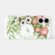 A graceful floral case featuring soft pink proteas and white anemones arranged in a delicate botanical wreath with an elegant monogram in the centre perfect for adding a personal touch of nature-inspired charm.