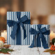 Elegant Prussian Blue and White Thin Striped Wrapping Paper