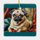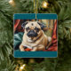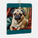 This charming Christmas ornament features a refined portrait of a pug, capturing its adorable features with elegance and style. Perfect for adding a touch of sophistication and warmth to your holiday decor.