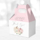 Cute favour boxes for your baby girl shower featuring "Thank You" and "A Sweet Little Pumpkin Is On Her Way" written in modern grey typography and a stylish script with a heart swash, and watercolors of pink and cream pumpkins and floral bouquets.