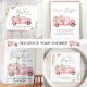 Elegant favour boxes for your baby girl shower featuring watercolors of a pink vintage truck carrying pumpkins and florals and "Thank You" and "A Sweet Little Pumpkin Is On Her Way" in modern grey typography and a stylish script with a heart swash.
