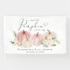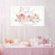 Elegant welcome banner for your baby girl shower with "a sweet little pumpkin is on her way" in modern grey typography and a stylish script with a heart swash and watercolors of pink and cream pumpkins and floral bouquets. Personalise with the mother-to-be's name and the shower date.