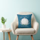 This elegant personalised throw pillow is decorated with a watercolor pumpkin and eucalyptus greenery on a teal blue background. It says "Thankful" in stylish script typography.