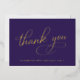 Elegant purple 80th birthday thank you card with "Thank You" in a chic calligraphy script rendered in your choice of genuine gold, silver or rose gold foil. On the back, personalise your thank you message and add your name in a signature-like script