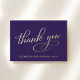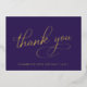Elegant purple 90th birthday party thank you card that features "Thank You" in a chic calligraphy script rendered in your choice of genuine gold, silver or rose gold foil. On the back, personalise your thank you message and add your name in a signature-like script