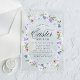 Set the tone for a sophisticated celebration with our elegant Easter brunch invitations. Your event details are beautifully showcased within an oval frame of delicate pastel violet and blue flowers, accented by lush green leaves for a touch of spring charm. The design is set against your choice of a frosted or transparent acrylic background, adding a modern and refined touch. Easily customisable for Easter lunch, dinner, or any gathering, these invitations are perfect for bringing loved ones together to celebrate the season in style!