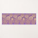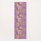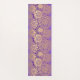 A beautiful yoga or exercise mat featuring an elegant purple and gold toned floral mandala pattern.