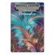 A custom-made mini clipboard to hold your notes, documents, paperwork, etc. Elegant Purple Blue Abstract Feather Personalised Mini Clipboard. Many uses and multiple purposes. Personalise it with your name, initials, subject, message, or quote.