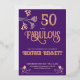 Elegant Purple Fabulous 50 Rose Foil Birthday Foil Invitation