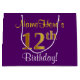 Elegant, Purple, Faux Gold 12th Birthday + Name Large Gift Bag