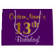 Elegant, Purple, Faux Gold 13th Birthday + Name Large Gift Bag