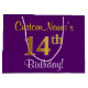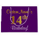 Elegant, Purple, Faux Gold 14th Birthday + Name Large Gift Bag