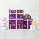 This simple and elegant wrapping paper design features a personalised message like "FirstName’s 18th Birthday" (with the "18th" having a faux/imitation gold-like colouring look) within a purple-coloured square area featuring a simple border outline. The name is in an elegant white-coloured script-like text, and can be personalised. Wrapping paper like this could perhaps be used when wrapping birthday gifts for somebody who is celebrating their eighteenth birthday. [~Z0000220]