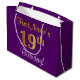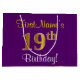 Elegant, Purple, Faux Gold 19th Birthday + Name Large Gift Bag