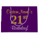 Elegant, Purple, Faux Gold 21st Birthday + Name Large Gift Bag