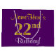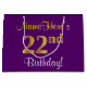 Elegant, Purple, Faux Gold 22nd Birthday + Name Large Gift Bag