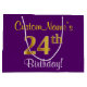 Elegant, Purple, Faux Gold 24th Birthday + Name Large Gift Bag