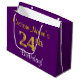 This simple, elegant birthday gift bag design features a personalised message like "CustomName’s 24th Birthday!" (with the "24th" having a faux/imitation gold-like colouring look) on a purple coloured background. The name is in script-like, yellow-coloured text, and can be customised. A personalised birthday themed gift bag like this could perhaps be used when giving a present or gift to somebody who is celebrating their twenty fourth birthday. [~Z0000255]