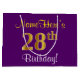 Elegant, Purple, Faux Gold 28th Birthday + Name Large Gift Bag