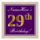 Elegant, Purple, Faux Gold 29th Birthday + Name Poster