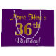 Elegant, Purple, Faux Gold 36th Birthday + Name Large Gift Bag