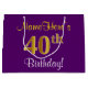 Elegant, Purple, Faux Gold 40th Birthday + Name Large Gift Bag